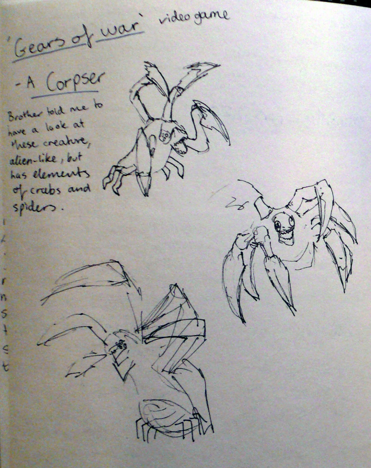 | My brother recommended I research the Corpser from the 'Gears of War' video game. |